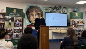 On Thursday 12th February, Holy Trinity hosted the Catholic schools Public Speaking competition. Fetah and Abdulrahman gave wonderful speeches and although they didn’t win, standing up and speaking in front of such a large audience is a huge achievement and we were very proud of them. Their courage and confidence were wonderful to witness.